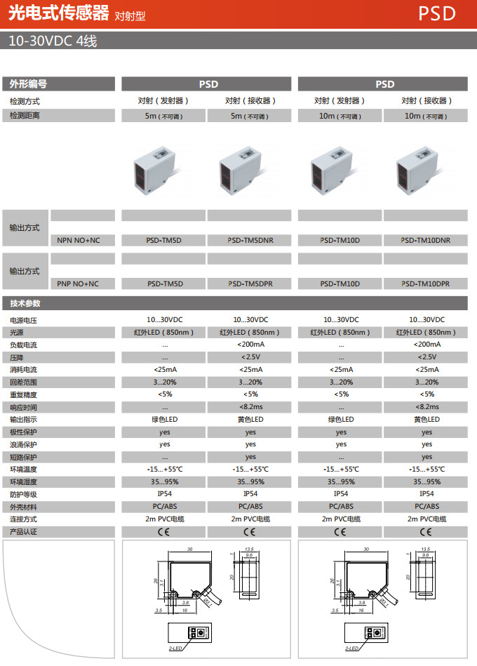 PSD-TM5D,PSD-TM5DNR,PSD-TM5DPR ,PSD-TM10D,PSD-TM10DNR,PSD-TM10DPR,光電式傳感器 |