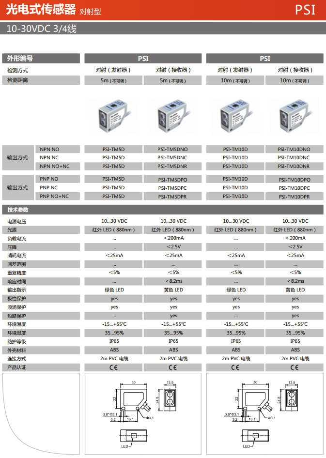 PSI-TM5D,PSI-TM5DNO,PSI-TM5DNC,PSI-TM5DNR,PSI-TM5DPO,PSI-TM5DPC,PSI-TM5DPR,PSI-TM10D,光電式傳感器 |