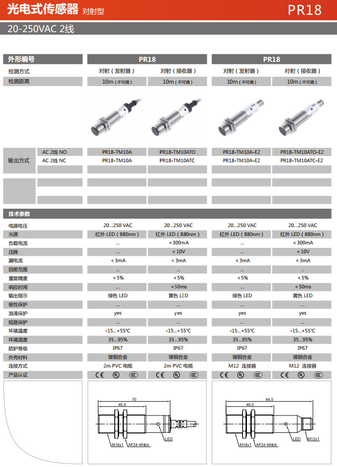 PR18-TM10A,PR18-TM10A,PR18-TM10ATO,PR18-TM10ATC,PR18-TM10A-E2,PR18-TM10A-E2,PR18-TM10ATO-E2,PR18-TM10ATC-E2,光電式傳感器
