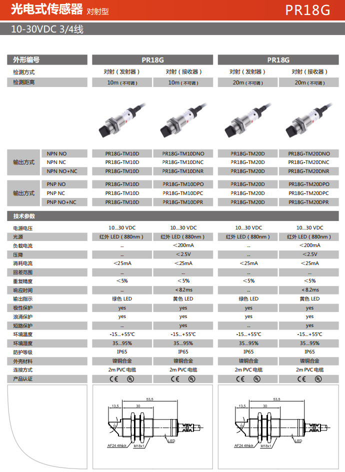 PR18G-TM10D,PR18G-TM10DNO,PR18G-TM10DNC,PR18G-TM10DNR,PR18G-TM10DPO,PR18G-TM10DPC,光電式傳感器 |