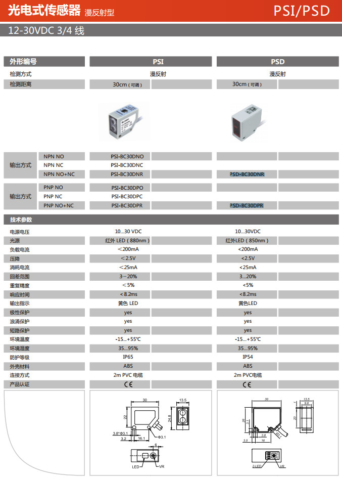 PSI-BC30DNO,PSI-BC30DNC,PSI-BC30DNR,PSI-BC30DPO,PSI-BC30DPC,PSI-BC30DPR,PSD-BC30DNR,PSD-BC30DPR,光電式傳