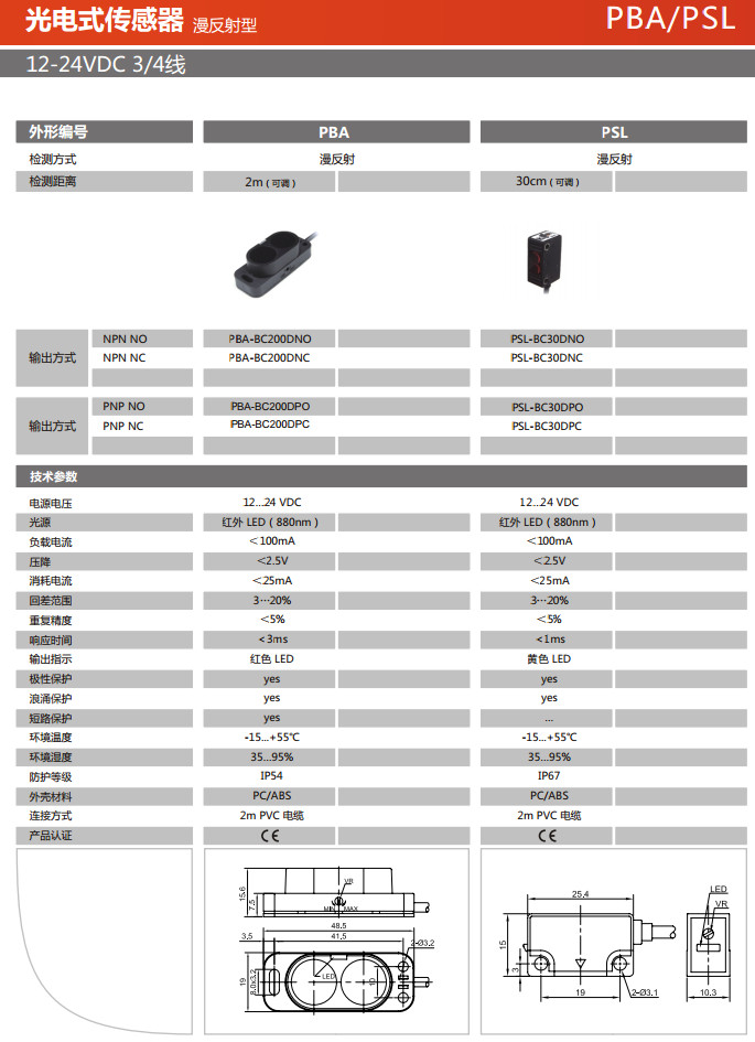 PBA-BC200DNO,PBA-BC200DNC,PSL-BC30DNO,PSL-BC30DNC,PBA-BC200DPO,PBA-BC200DPC,PSL-BC30DPO,PSL-BC30DPC,光電式傳感器