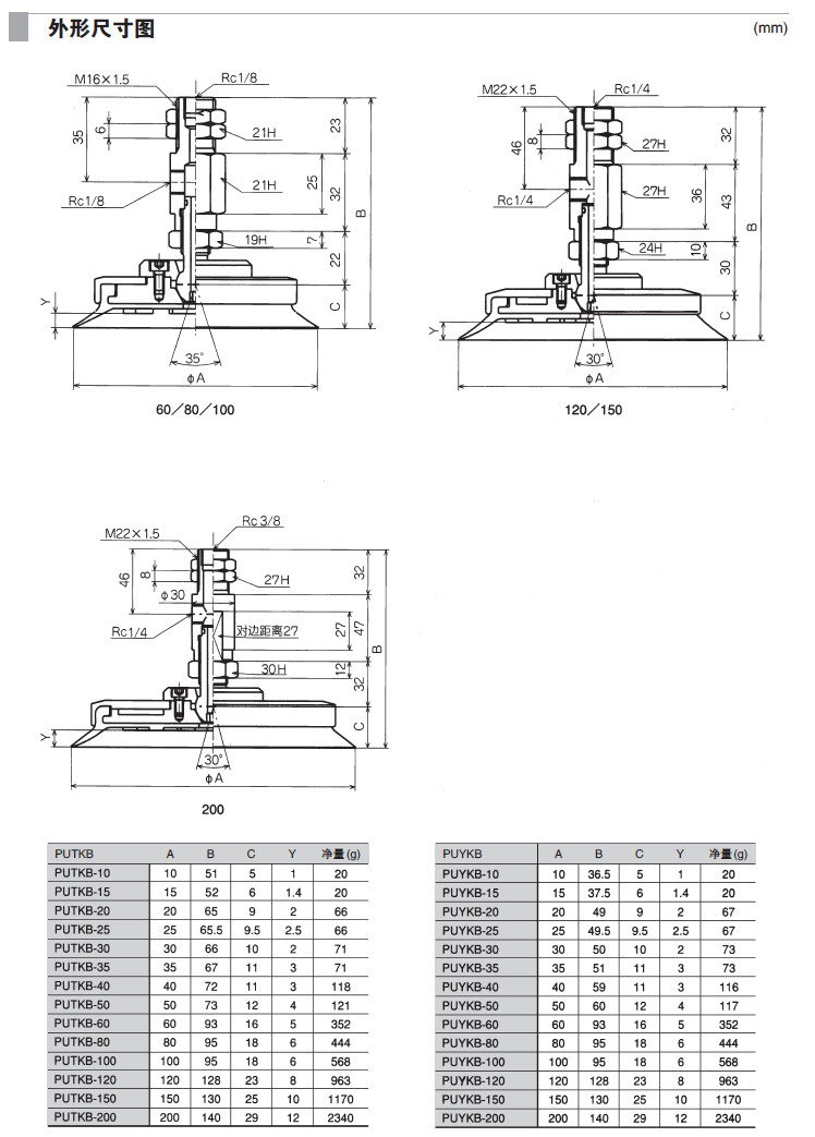 PUTKB-10,PUTKB-20,PUTKB-30,PUYKB-50,PUYKB-60,PUYKB-80,吸盤