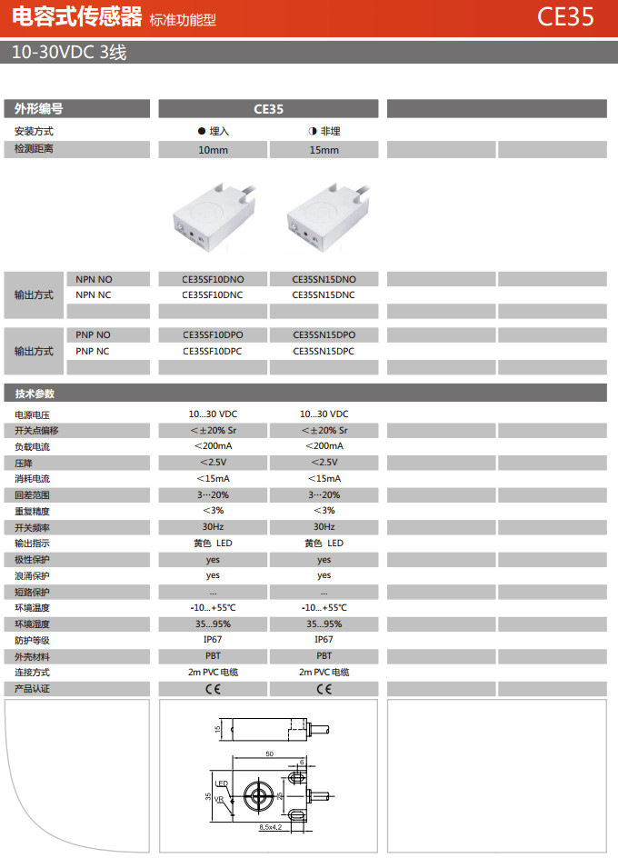 CE35SF10DNO,CE35SF10DNC,CE35SF10DPO,CE35SF10DPC,CE35SN15DNO,CE35SN15DNC,CE35SN15DPO,CE35SN15DPC,電容式傳 |