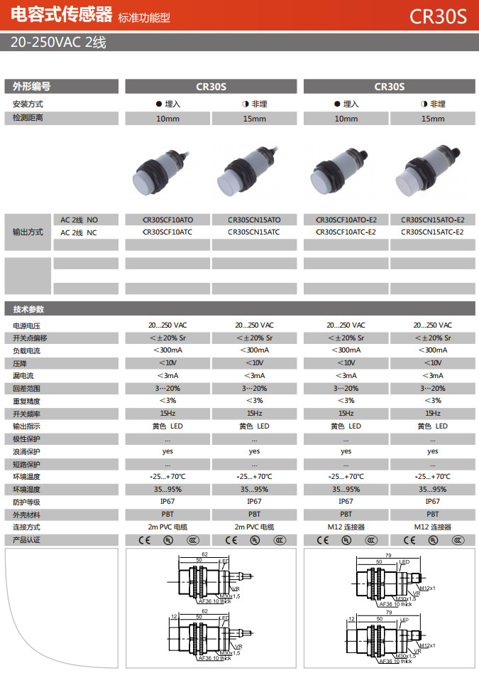 CR30SCF10ATO,CR30SCF10ATC,CR30SCN15ATO,CR30SCN15ATC,CR30SCF10ATO-E2,CR30SCF10ATC-E2,CR30SCN15ATO-E2,CR30SCN15ATC-E2,電容式傳感器