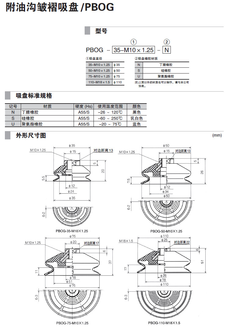 PBOG-35-M10×1.25,PBOG-50-M10×1.25,PBOG-75-M10×1.25,PBOG-110-M18×1.5,吸盤