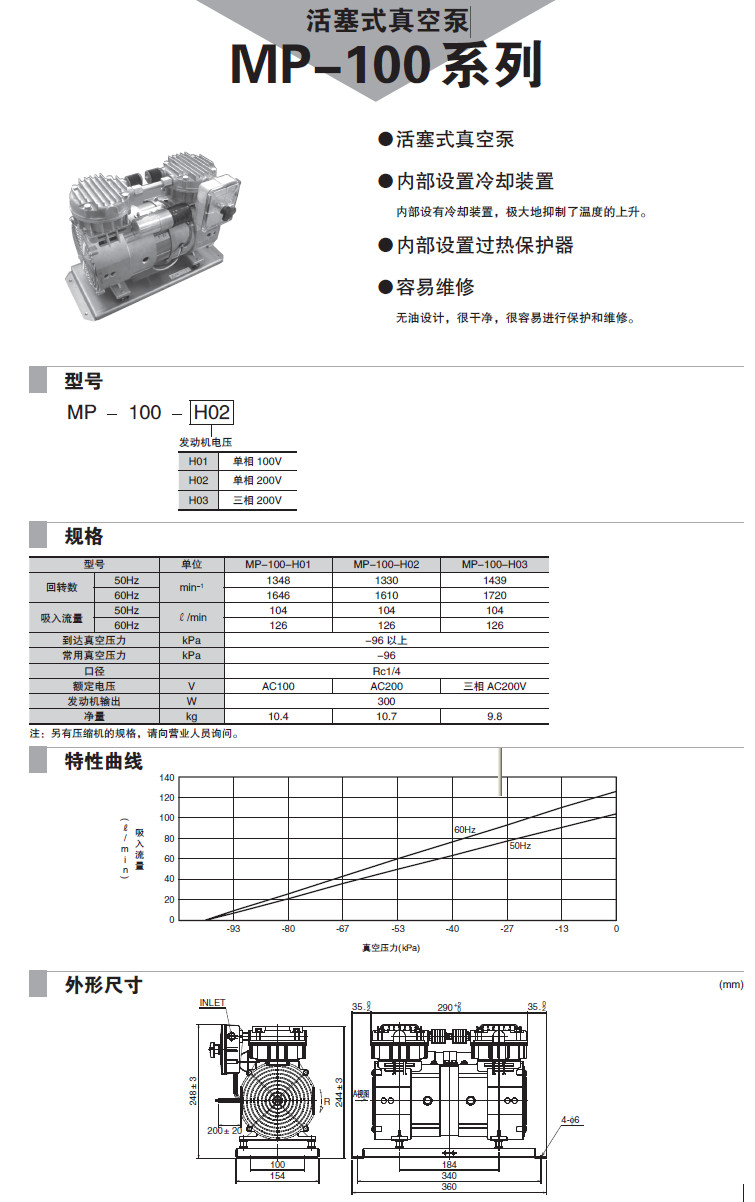 MP-100-H01,MP-100-H02,MP-100-H03,活塞式真空泵