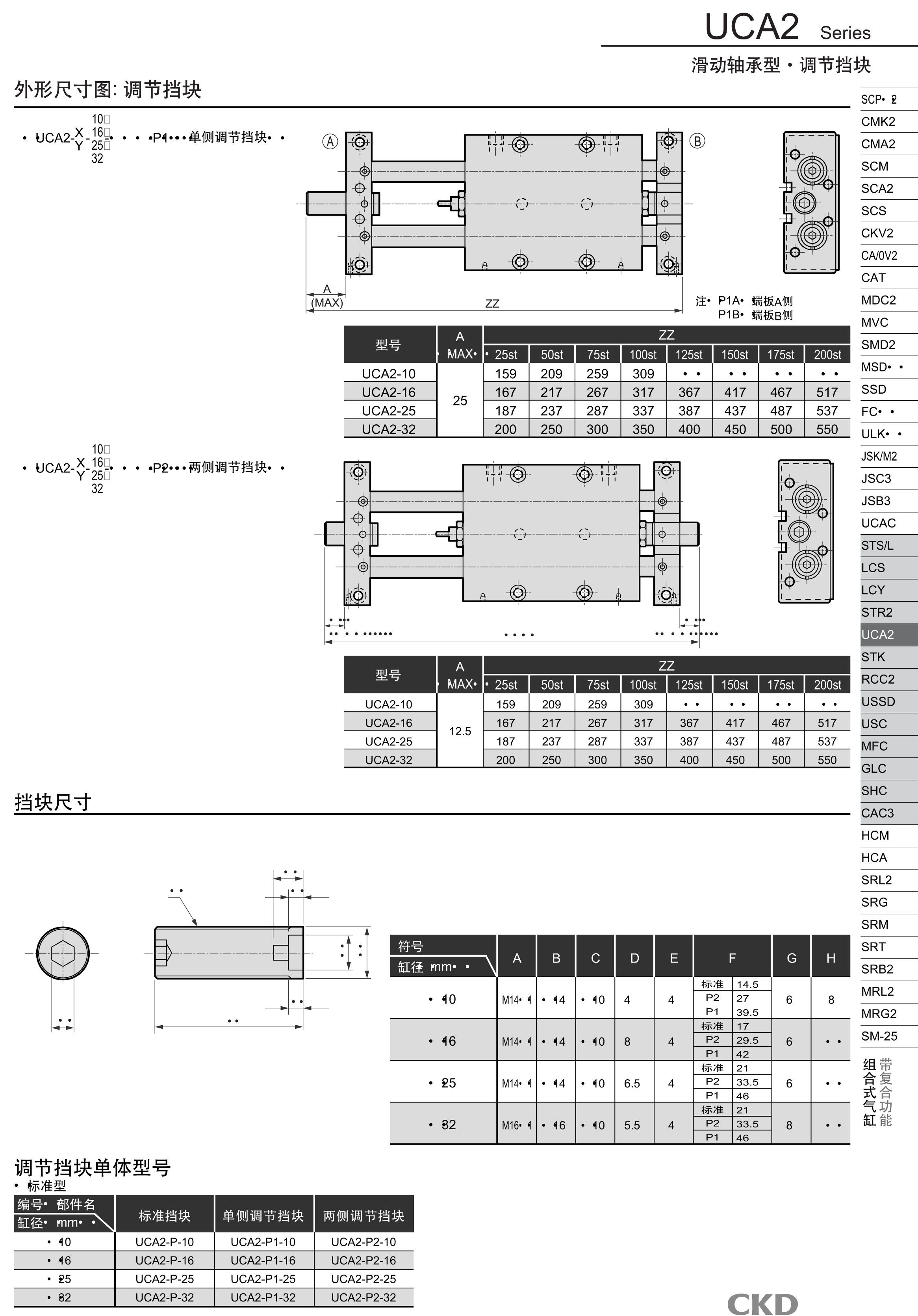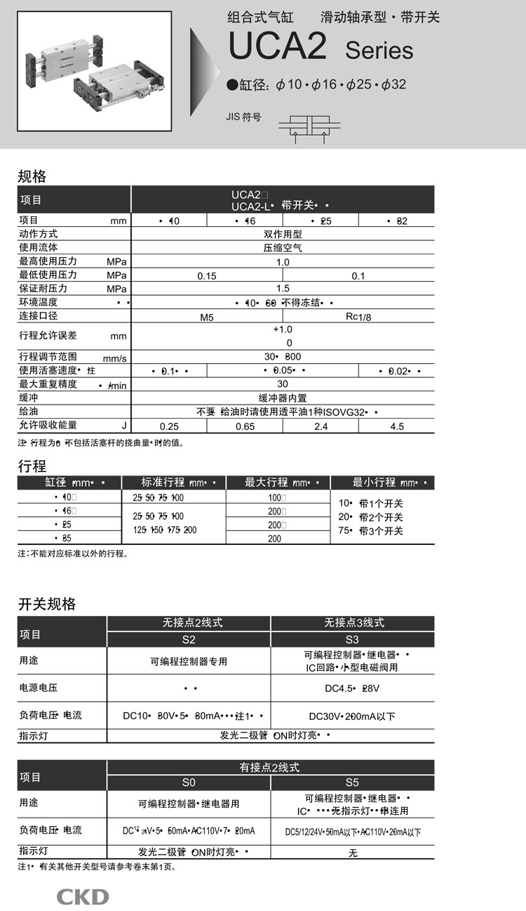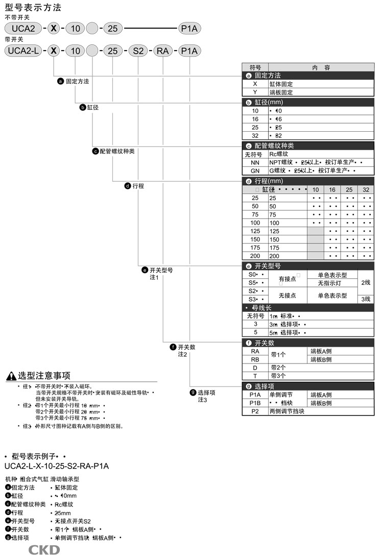 UCA2-X-10-25,UCA2-Y-10-25,UCA2-L-X-10-25,UCA2-L-Y-10-25,CKD組合式氣缸