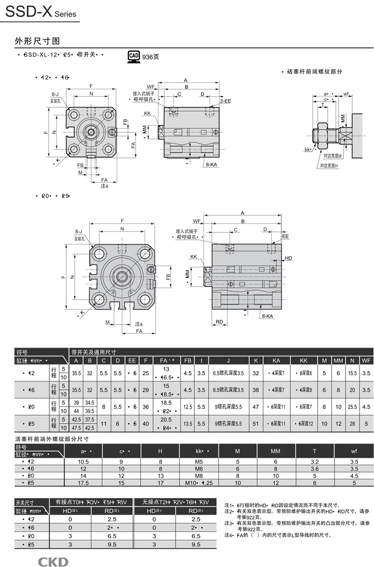 SSD-X-12-5,SSD-XL-12-5,SSD-XL1-12-5,SSD-Y-12-5,SSD-YL-12-5,SSD-YL1-12-5,CKD超緊湊型氣缸