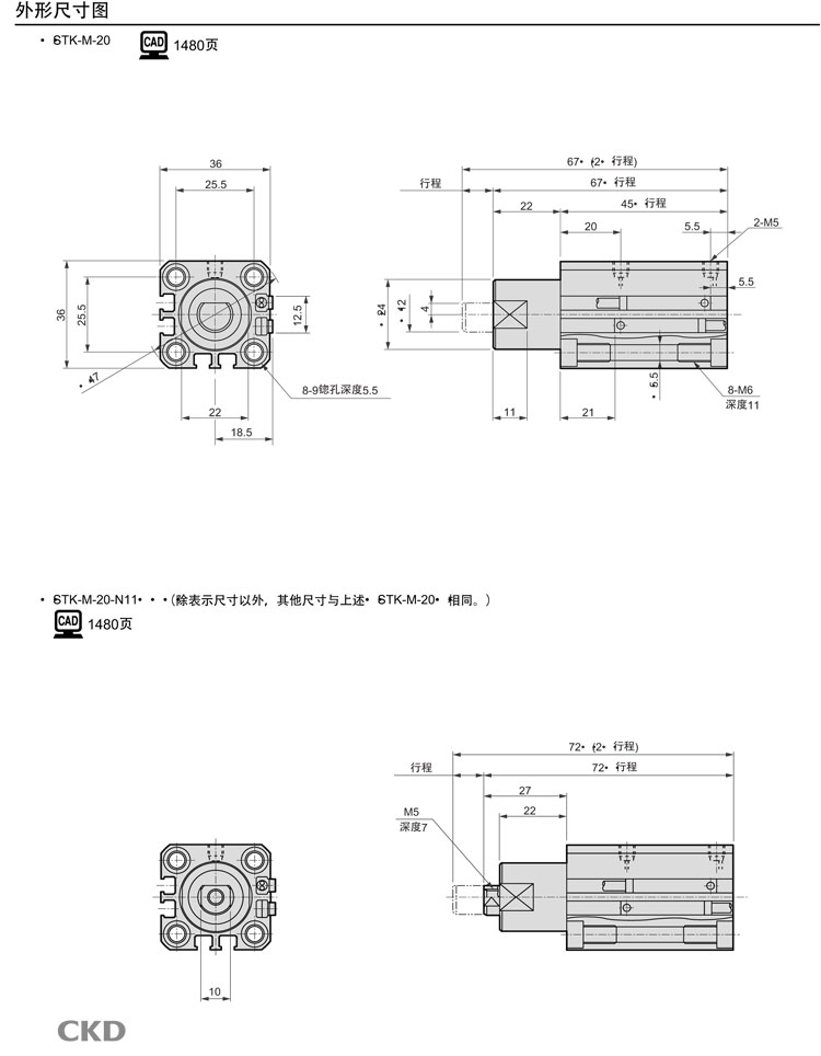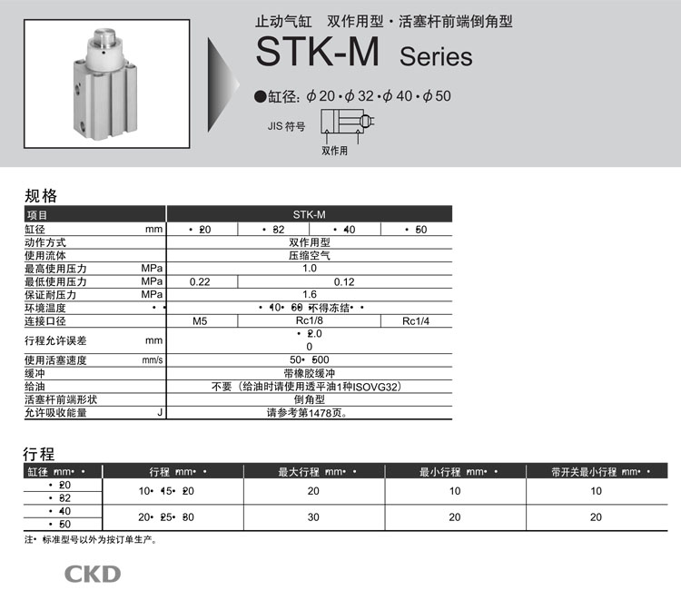 STK-M-20-10,STK-M-32-10,STK-M-40-20,STK-M-50-20,STK-M-20-15,STK-M-40-25,CKD止動(dòng)氣缸