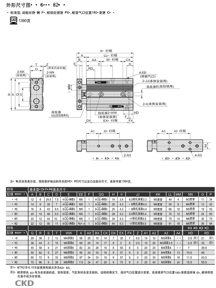STR2-M-6-10,STR2-B-6-10,STR2-M-10-10,STR2-B-10-40,STR2-B-32-100,CKD雙活塞桿型氣缸