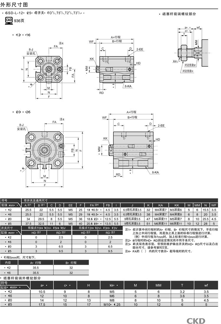 SSD-KG1-25-10,SSD-KG1L-25-10,SSD-KG4-25-10,SSD-KG4L-25-10,CKD超緊湊型氣缸