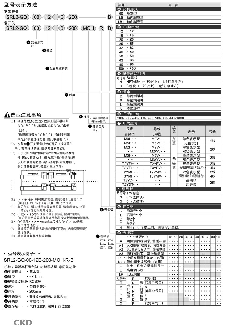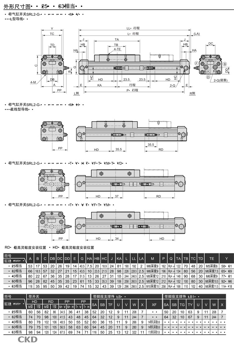 SRL2-GQ-LB1-25B-200,SRL2-GQ-LB1-25B-300,SRL2-GQ-LB1-25B-400,SRL2-GQ-LB1-25B-500,CKD超級無活塞桿型氣缸