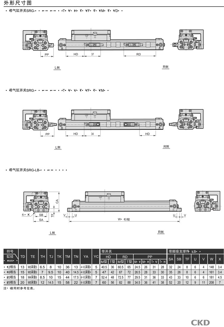 SRG-00-12B-200,SRG-LB-12B-200,SRG-LB1-12B-200,SRG-LB1-16B-1000,CKD倍力型緊氣缸