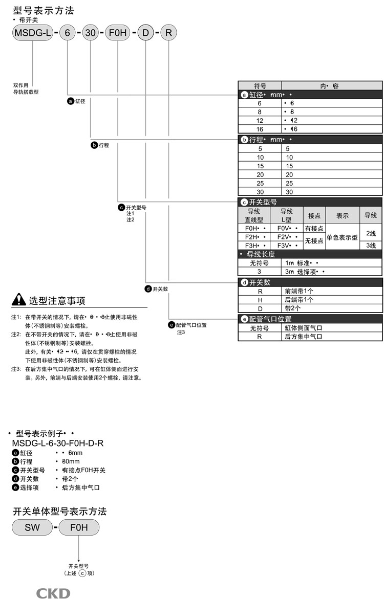 MSDG-L-6,MSDG-L-10,MSDG-L-15,MSDG-L-20,MSDG-L-25,MSDG-L-30,CKD緊湊型氣缸