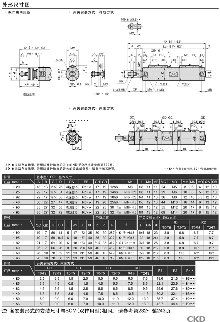 SCM-W-00,SCM-W-LB,SCM-W-FA,SCM-W-FB,SCM-W-CA,SCM-W-TA,SCM-W-TB,CKD圓形緊湊氣缸