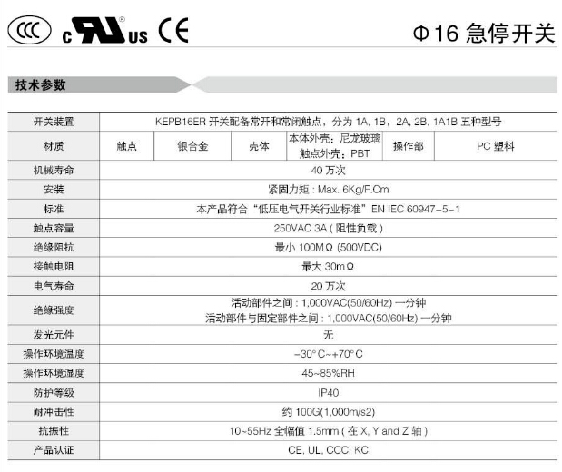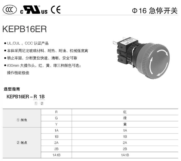 KEPB16ER,Koino Φ16急停開(kāi)關(guān)