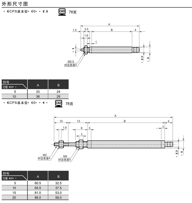 SCPS-00-2.5-5,SCPS-00-2.5-10,SCPS-00-4-5,SCPS-00-4-10,SCPS-00-4-15,SCPS-00-4-20,CKD筆型氣缸