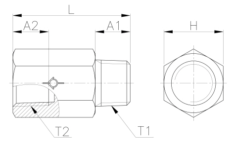 | Model | T1 | T2 | L | A1 | A2 | H(Hex) | WEIGHT(g) | BOX(EA) |