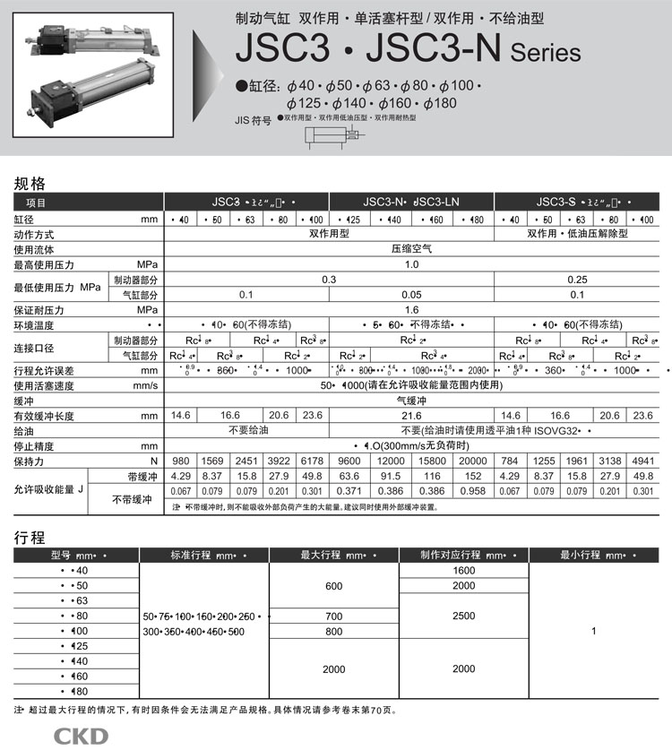JSC3-00-40B-50,JSC3-S-00-40B-50,JSC3-SL2-00-40B-50,CKD制動氣缸