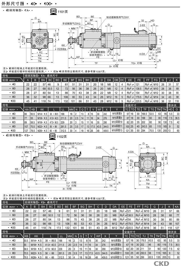 JSC3-H-00-40B,JSC3-SH-00-40B,JSC3-L2H-00-40B,JSC3-SL2H-00-40B,CKD制動氣缸