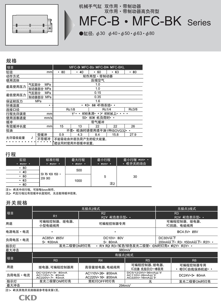 MFC-BKL-LA-80B-200,MFC-BKL-LA-80B-300,MFC-BKL-FA-80B-50,MFC-BKL-FA-80B-75,MFC-BKL-FA-80B-100,CKD機械手氣缸