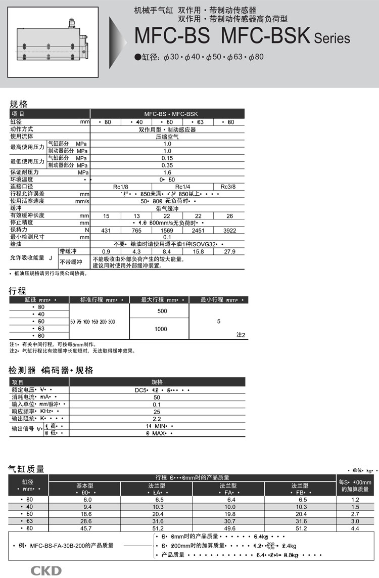 MFC-BS-00,MFC-BS-LA,MFC-BS-FA,MFC-BS-FB,MFC-BSK-00,MFC-BSK-LA,MFC-BSK-FA,MFC-BSK-FB,CKD機(jī)械手氣缸