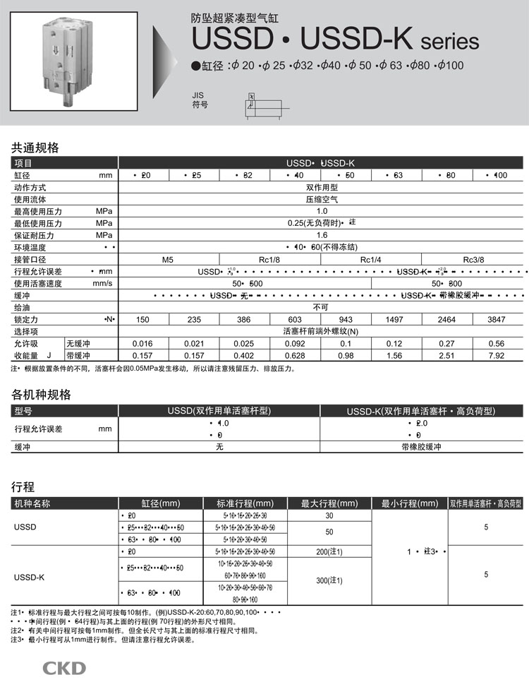 USSD-20-5,USSD-L-20-5,USSD-K-20-5,USSD-KL-20-5,USSD-25-50,CKD防墜超緊湊型氣缸