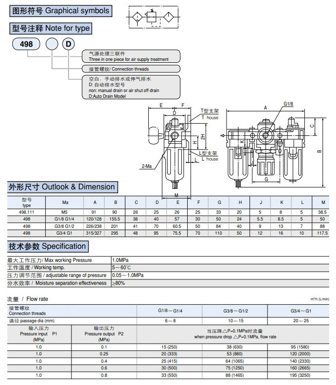 1、氣源處理三聯(lián)件498系列最大工作壓力:1.0Mpa