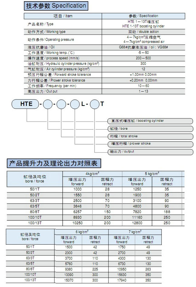 HTE-50,HTE-63,HTE-80,HTE-100,直壓式增壓缸