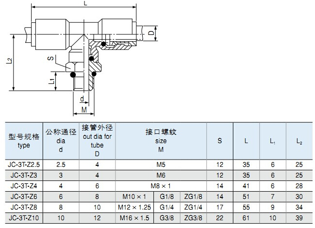 JC-3T-Z2.5,JC-3T-Z3,JC-3T-Z4,JC-3T-Z6,JC-3T-Z8,JC-3T-Z10,插入式三通終端管接頭