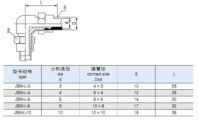 JSM-L-3,JSM-L-4,JSM-L-6,JSM-L-8,JSM-L-10,鎖母式直角管接頭