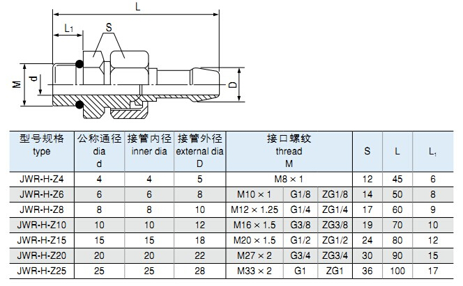 JWR-H-Z4,JWR-H-Z6,JWR-H-Z8,JWR-H-Z10,JWR-H-Z15,JWR-H-Z20,JWR-H-Z25,外插式直通終端活節(jié)管接頭 |