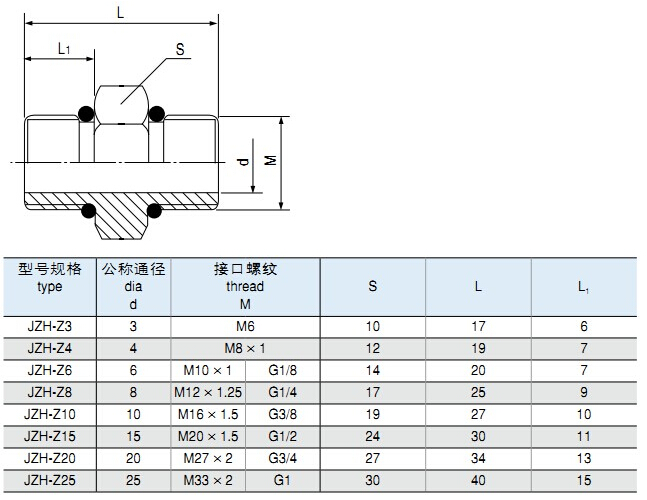 JZH-Z3,JZH-Z4,JZH-Z6,JZH-Z8,JZH-Z10,JZH-Z15,JZH-Z20,JZH-Z25,組合式直通終端管接頭 |