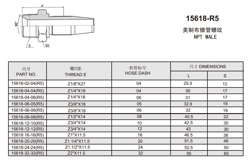 15618-08-08(R5),15618-12-10(R5),15618-12-12(R5),15618-16-16(R5),15618-20-20(R5),