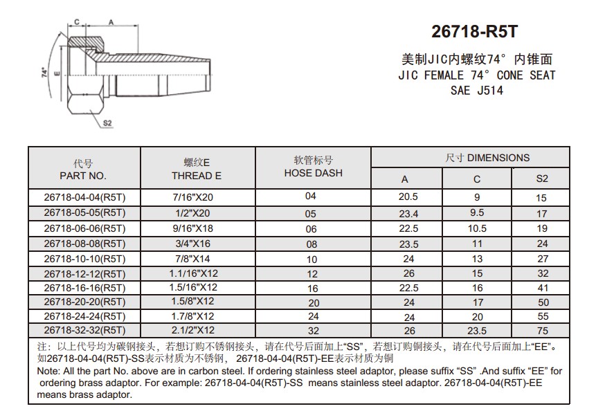 26718-12-12(R5T),26718-16-16(R5T),26718-20-20(R5T),26718-24-24(R5T),26718-32-32(R5T),