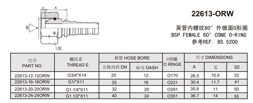 22613-12-12ORW,22613-16-16ORW,22613-20-20ORW,22613-24-24ORW,扣壓式軟管接頭
