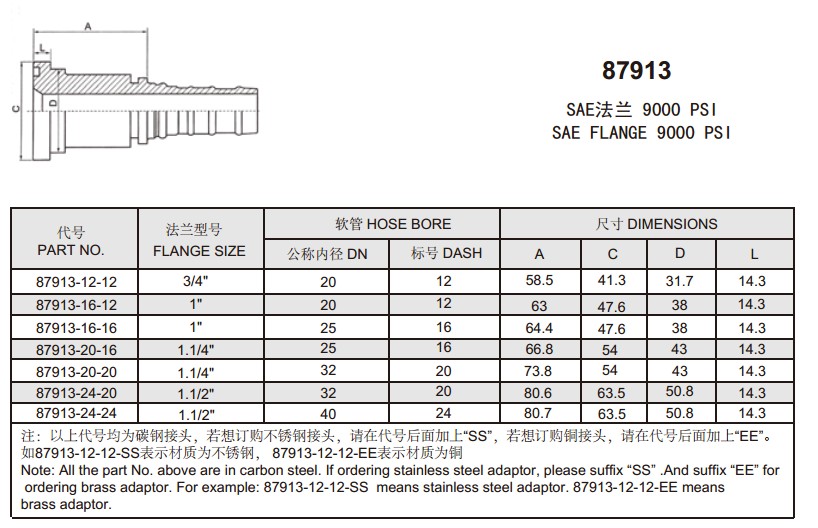 87913-12-12,87913-16-12,87913-16-16,87913-20-16,87913-20-20,87913-24-20,87913-24-24,扣壓式軟管接頭