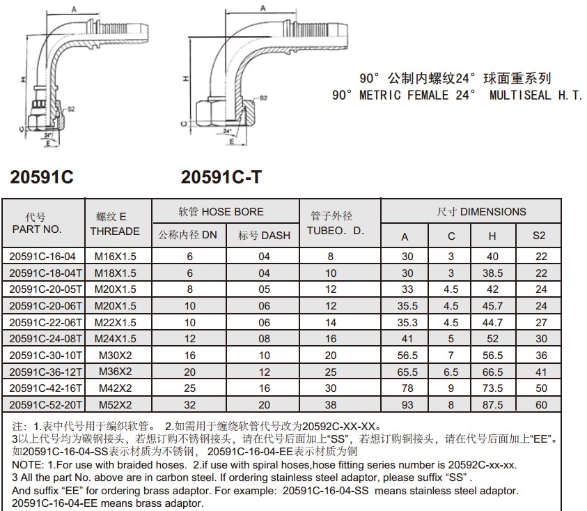 20591C-16-04,20591C-18-04T,20591C-20-05T,20591C-20-06T,20591C-22-06T,20591C-24-08T,扣壓式軟管接頭
