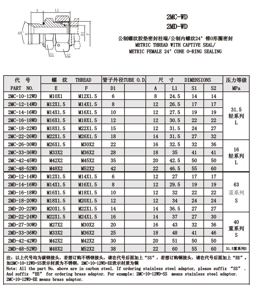 2MC-10-12WD,2MC-12-14WD,2MC-14-16WD,2MD-33-36WD,2MD-42-42WD,2MD-48-52WD,公制螺紋卡套接頭