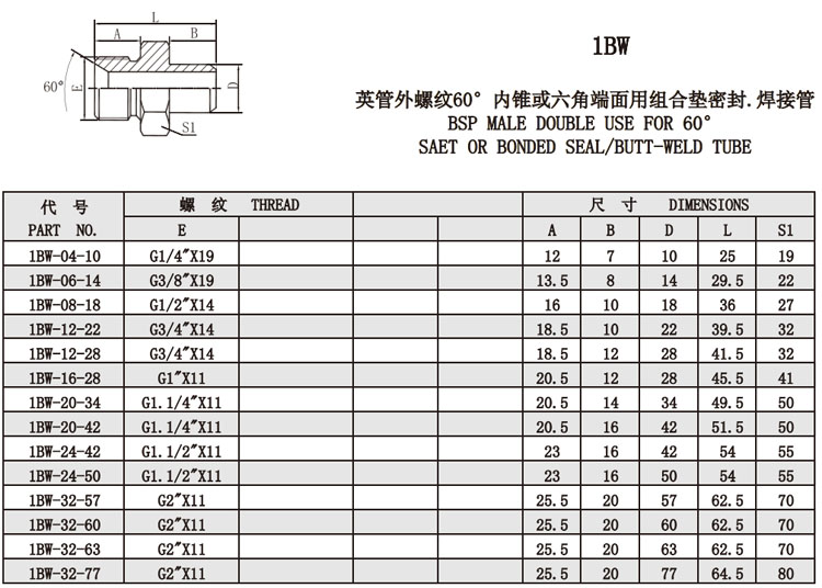 1BW-04-10,1BW-06-14,1BW-08-18,1BW-12-22,1BW-16-28,1BW-20-34,1BW-24-50,1BW-32-57,