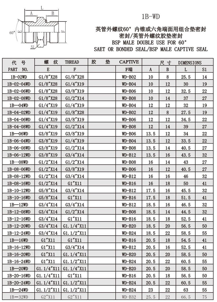 1B-02WD,1B-04WD,1B-06WD,1B-08WD,1B-12WD,1B-16WD,1B-20WD,1B-24WD,1B-32WD,錐面密封接頭