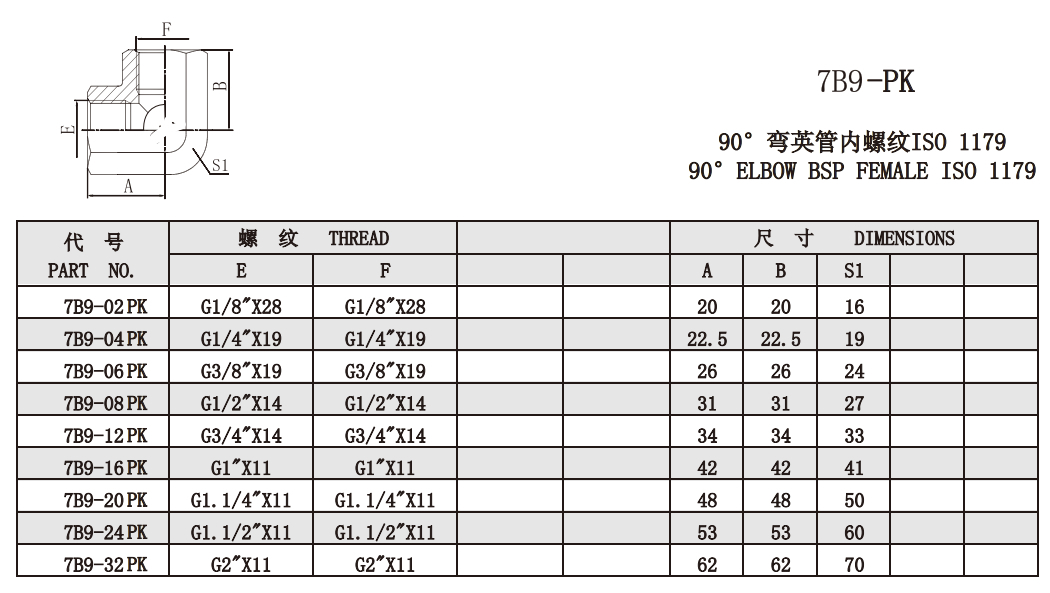 7B9-02PK,7B9-04PK,7B9-06PK,7B9-08PK,7B9-12PK,7B9-16PK,7B9-20PK,7B9-24PK,7B9-32PK,內(nèi)螺紋接頭