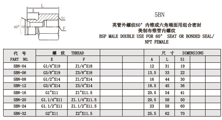 5BN-04,5BN-06,5BN-08,5BN-12,5BN-16,5BN-20,5BN-24,5BN-32,管內螺紋接頭