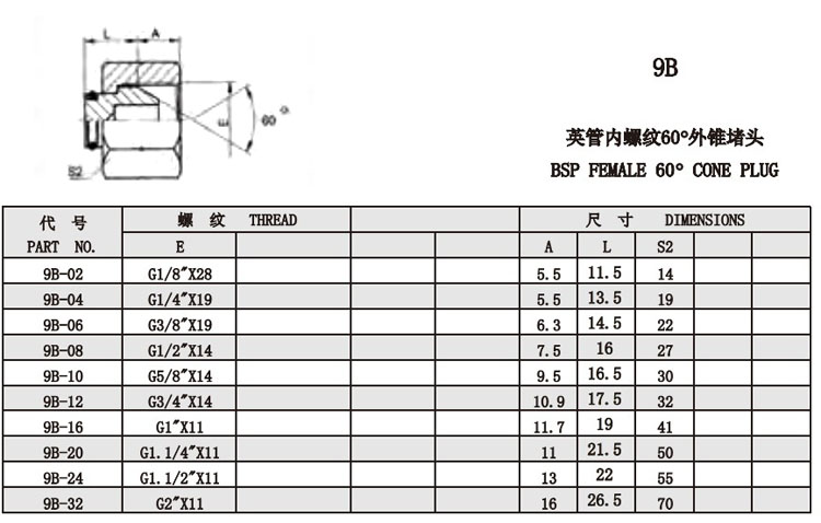 9B-02,9B-04,9B-06,9B-08,9B-10,9B-12,9B-16,9B-20,9B-24,9B-32,外錐堵頭