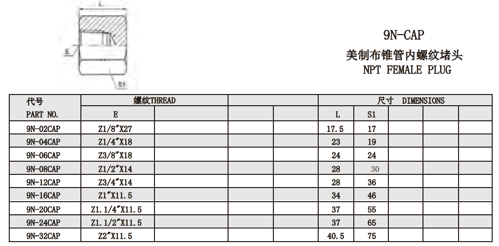 9N-02CAP,9N-04CAP,9N-06CAP,9N-08CAP,9N-12CAP,9N-16CAP,9N-20CAP,9N-24CAP,9N-32CAP,內(nèi)螺紋堵頭