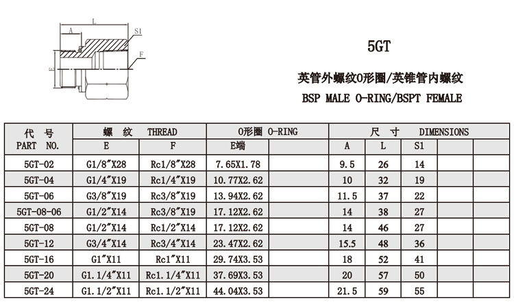 5GT-02,5GT-04,5GT-06,5GT-08-06,5GT-08,5GT-12,5GT-16,5GT-20,5GT-24,內(nèi)螺紋接頭