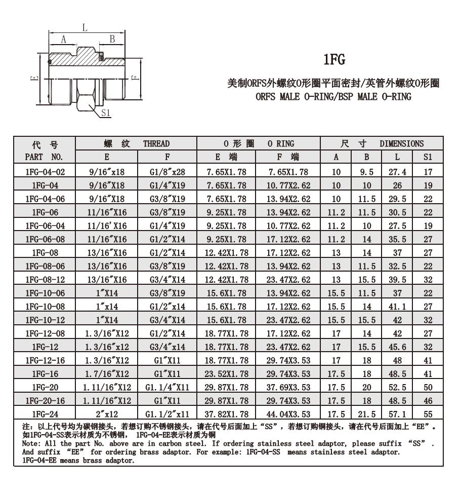1FG-04,1FG-06,1FG-08,1FG-12,1FG-16,1FG-20,1FG-24