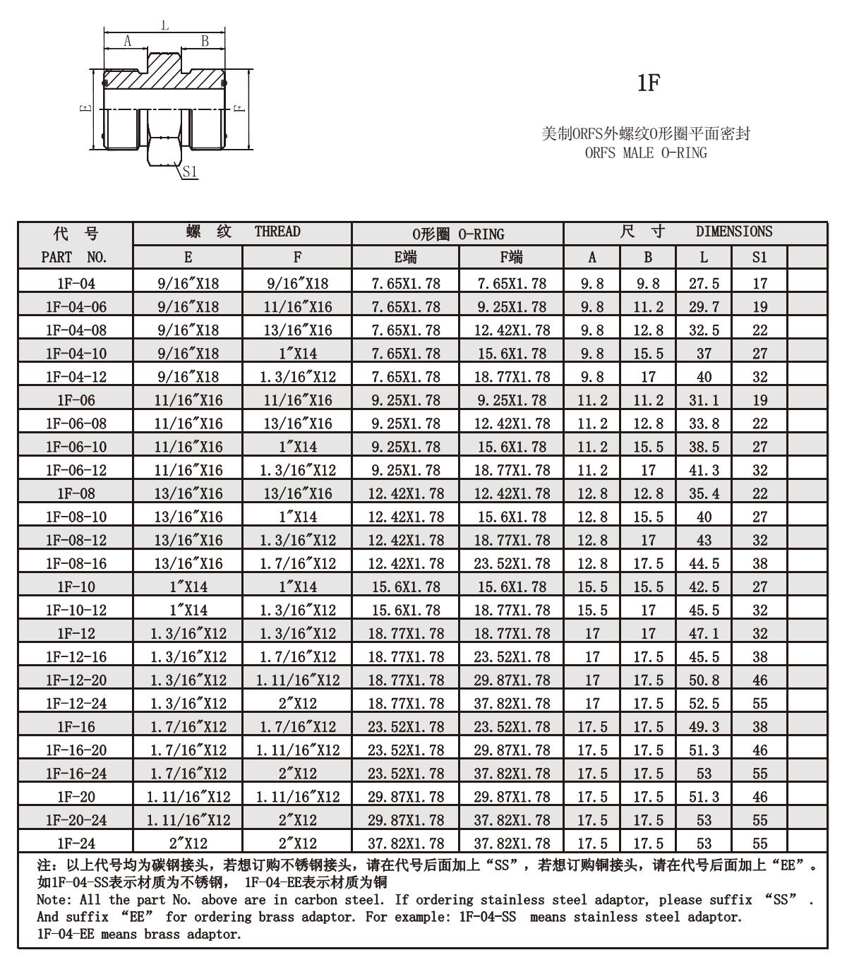 1F-04,1F-06,1F-08,1F-10,1F-12,1F-16,1F-20,1F-24,1F-04-06,