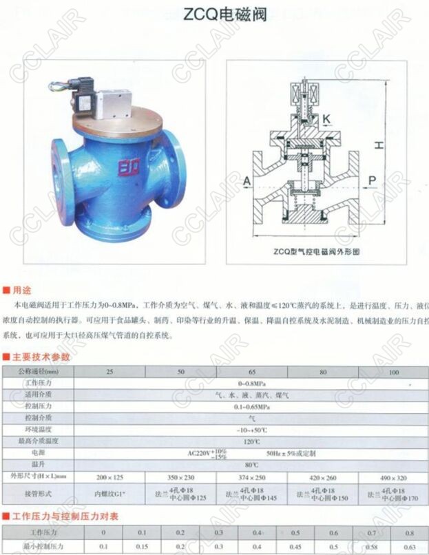 ZCQ-25,ZCQ-50,ZCQ-65,ZCQ-80,ZCQ-100,氣控電磁閥(立式)
